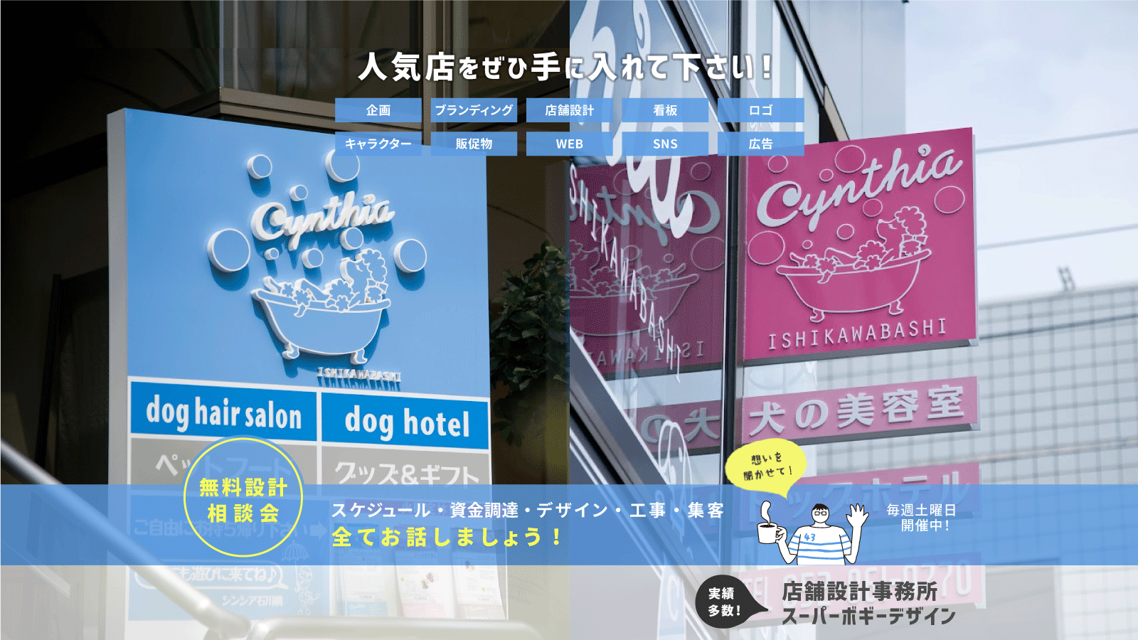 建築・空間・ブランディング・ロゴ、キャラクター・サイン・グラフィック・ウェブ・SNS・広告をトータルデザインとして請け負うことや、各項目単独でも受けられる体制と全国対応とすることが決まりました。