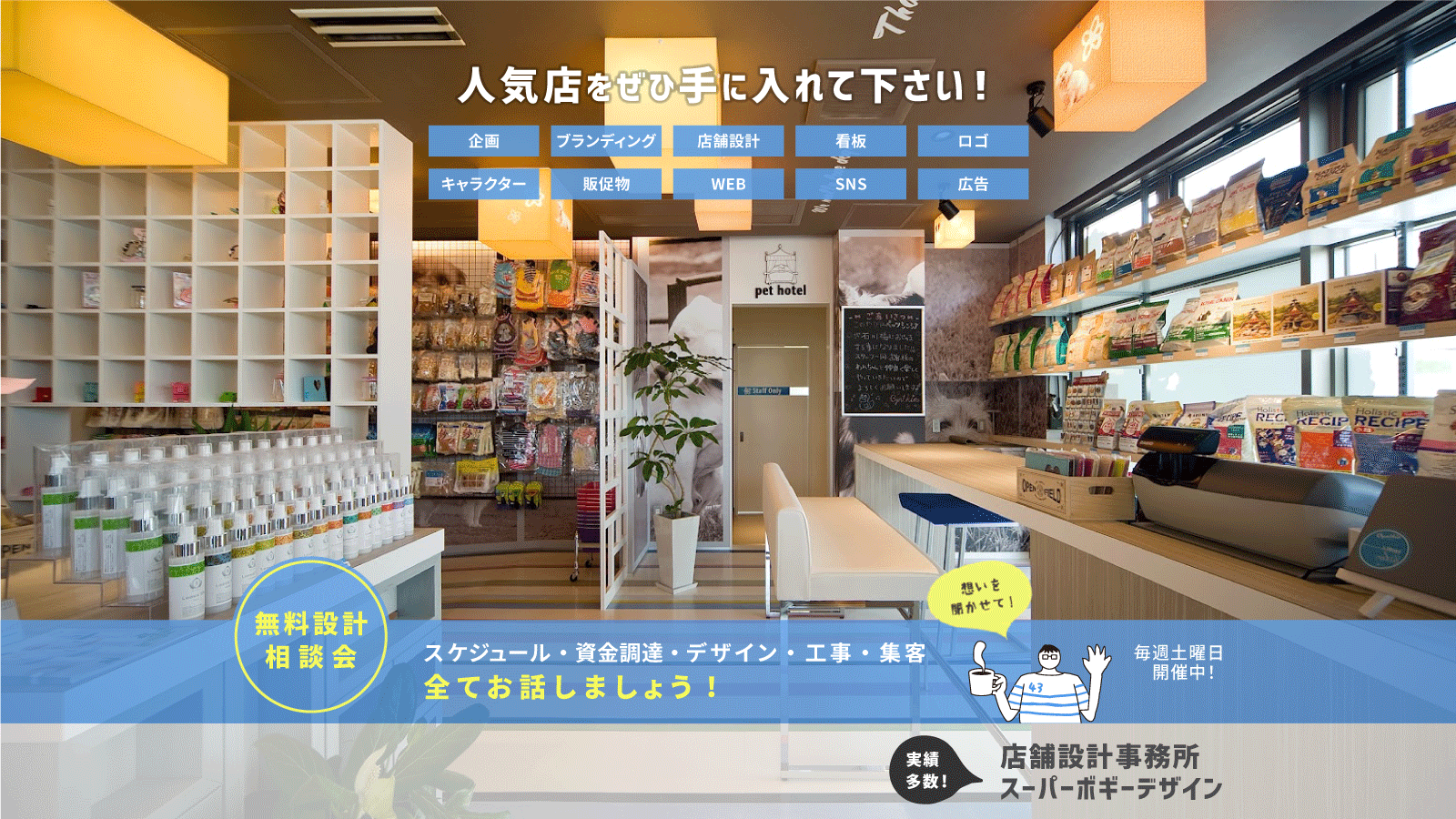 カウンセリング、企画・構想参加、店舗設計、