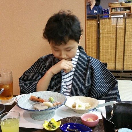 浴衣が似合う男。温泉旅館ではご飯を2回もおかわりをする食欲の男。頼もしい一人っ子長男けんちです。もうちょうちゃん(とうちゃん)よりもたくさん食べるのね、りっぱ...