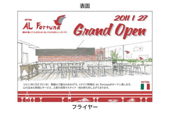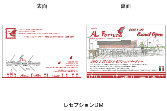 このロゴやモチーフによりチラシを含め、ショップカードやメニュー帳に至るまで統一感を持って制作されて、お客様の目に触れることで、お客様が安心感を得るようなそんなブランディングが必要だと感じるような好立地でもあり、名古屋で1番セレブ感の強い立地にあることで、庶民的であることの方が愛される店になっていると感じています。セレブな方にとってはセレブ感が強いお店は、慣れっこで気楽に行けるイタリアンの店が欲しいと言う思いが通じたのかも。