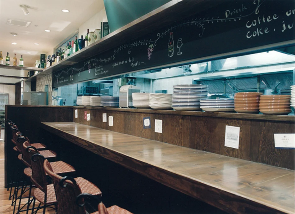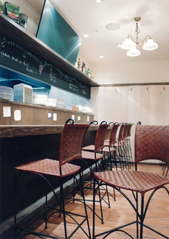 名古屋名物あんかけスパゲティとゆであげスパゲティ、ピザの専門店(9店舗目の出店) 常に立地条件に合わせてデザインを提案しいずれも繁盛店となっています。今回はイタリアンスタイルをふんだんに使用し現地のピザ工房をイメージして計画されました。