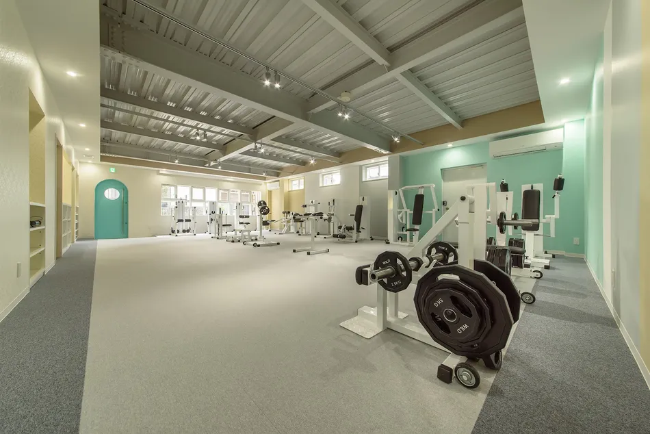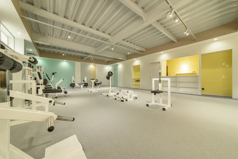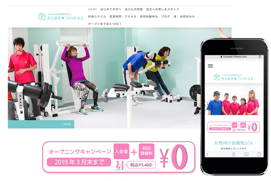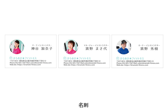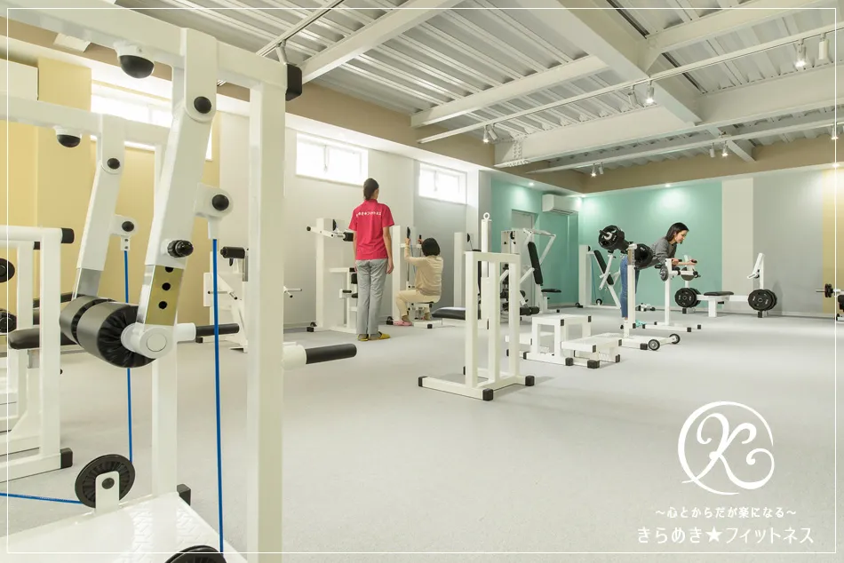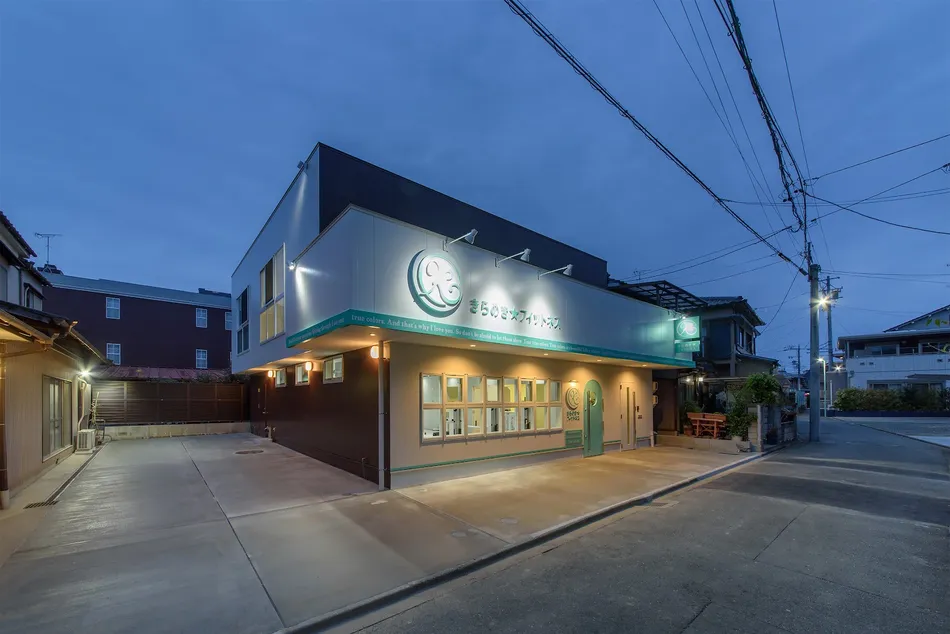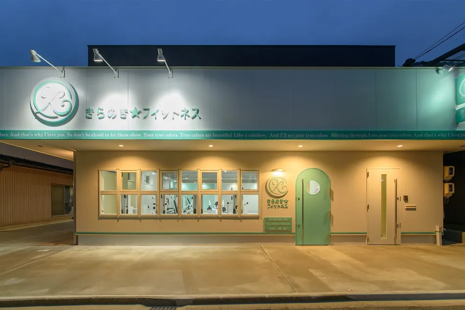 名古屋市南区の会員制フィットネスジム「きらめき☆フィットネス名古屋」です。 店内は柱が邪魔をしない広々としたジムスペースで気持ちよくトレーニングできます。ジムでは、介護予防や運動機能の改善を目的とし、若い方だけでなくシニア世代でも利用しやすい特別なマシンを導入しているそうで、地域の皆様が元気になるための空間として明るく上品なカラーでコーディネイトしました。受付壁面にはシルバーの“きらめき”マーク、その他で使用した花柄クロスもキラキラとした素材になっていて、店舗やオーナーのイメージに合った彩りを添えています。ロゴタイプ・ロゴマークも上品さを大切に、店舗建築から外観、内装と看板と印刷物・HPまで統一したデザインに仕上げました。