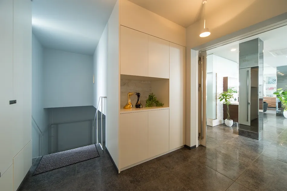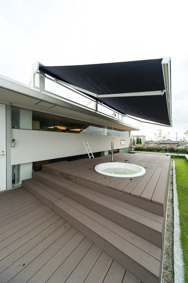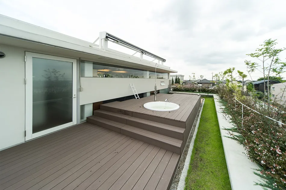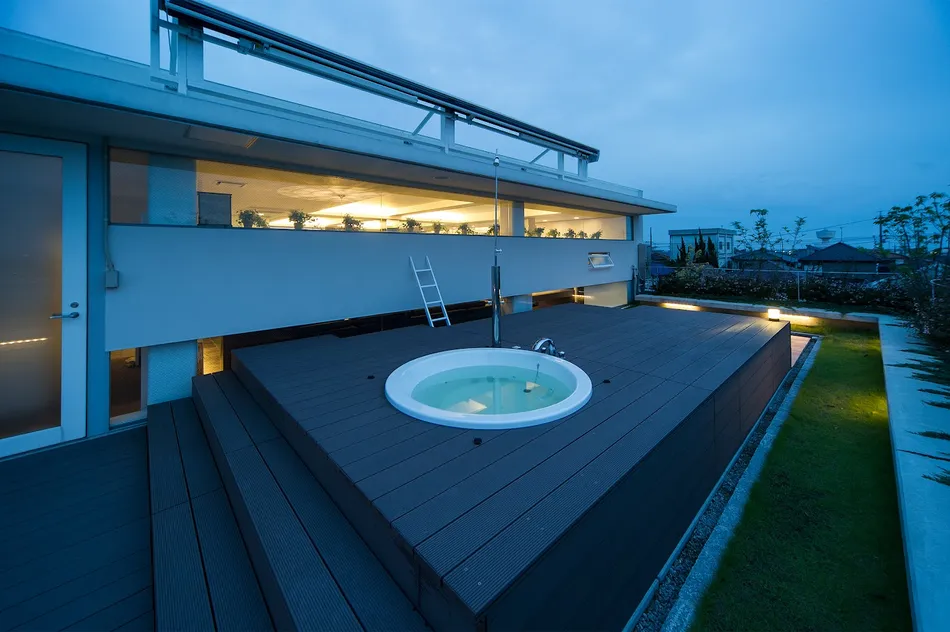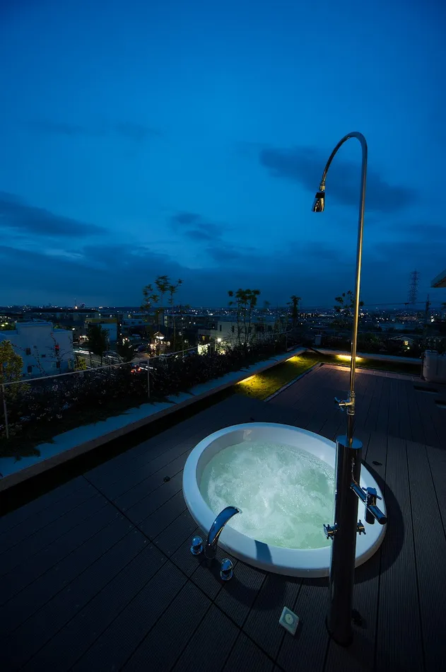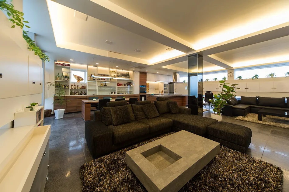 名古屋市天白区、鉄骨5階建て。住宅のインテリアから屋上のエクステリアなどトータルでデザインをお手伝いしました!5階建て自社ビルの最上階、屋上ジャグジーもある ラグジュアリーなお宅が完成しました!白を基調にモダンでシックなインテリアが大人な、リッチな空間になっています。