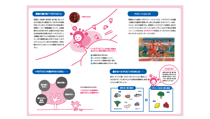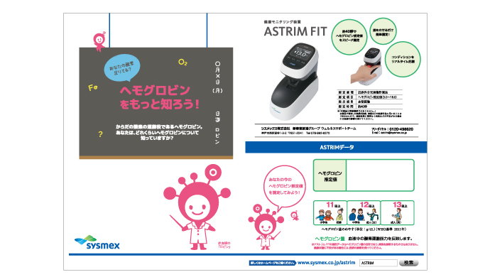 医療機器メーカさんの商品キャラクター、販促物のお手伝いをしました!採血をしなくても貧血が測れる健康器具が女性にとって身近で親しみやすく思ってもらえるような赤血球がモチーフのかわいらしいキャラクターを作りました!