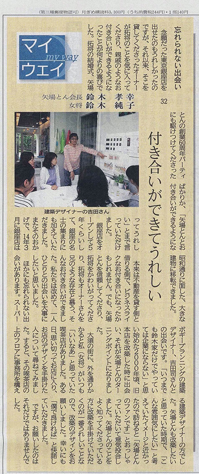 名古屋の名高い名店の女将と3代目(後の社長)から熱い思いや未来への思いをお聞きし、気持ちが熱くなりました、それから旧本店改装、エスカ店、銀座店、長島店、現在の本店ほか、その後も長きに渡りお付き合い頂いていることにこちらこそ感謝しかありません!